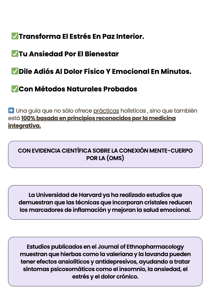 Obtenga su guía práctica de tratamientos con cristales y hierbas para eliminar el dolor y las enfermedades psicosomáticas en solo unos minutos.